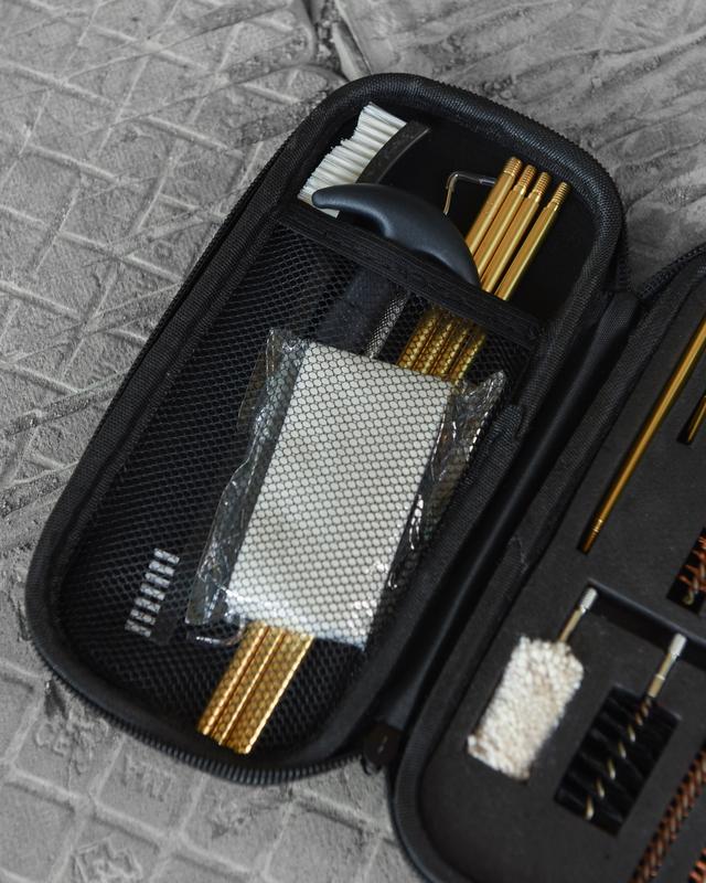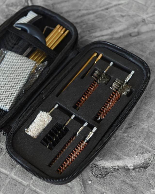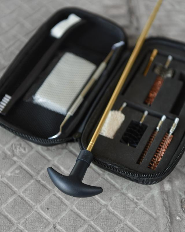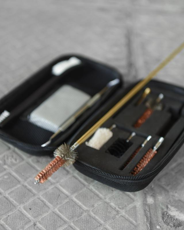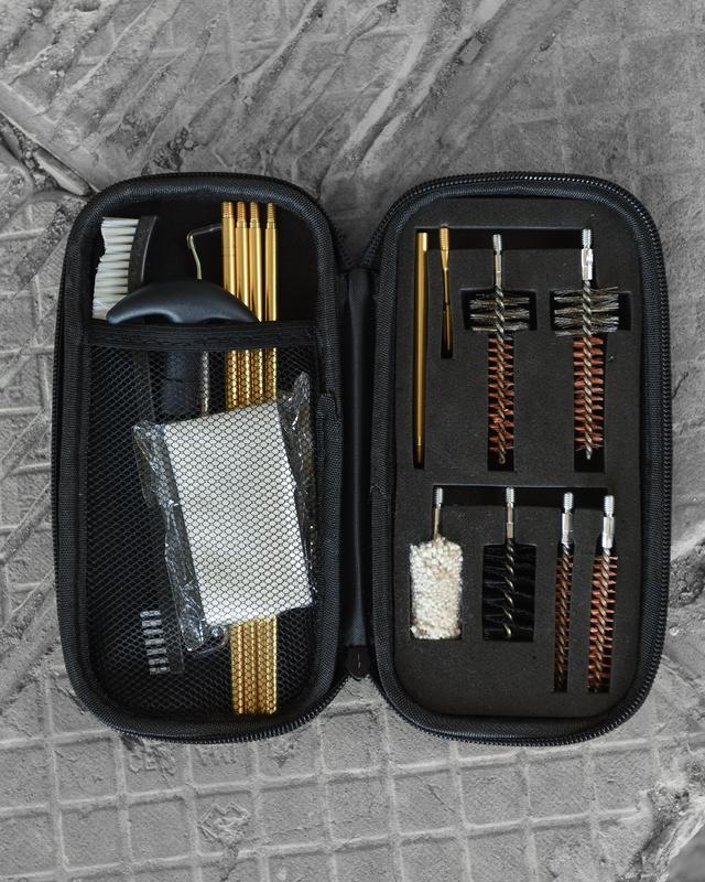 Набор для чистки.223/5.45/7.62/.308/5.56 Zhejiang GK40 универсальный. Популярный набор для чистки, которым одновременно можно почистить оружие как в.223 калибре/5.45 АК, так и в.30 калибрах (ух 7.62). Это легкий полевой набор для очистки оружия весом всего 0,350 кг! Размер упаковки 20X15X5,5см.