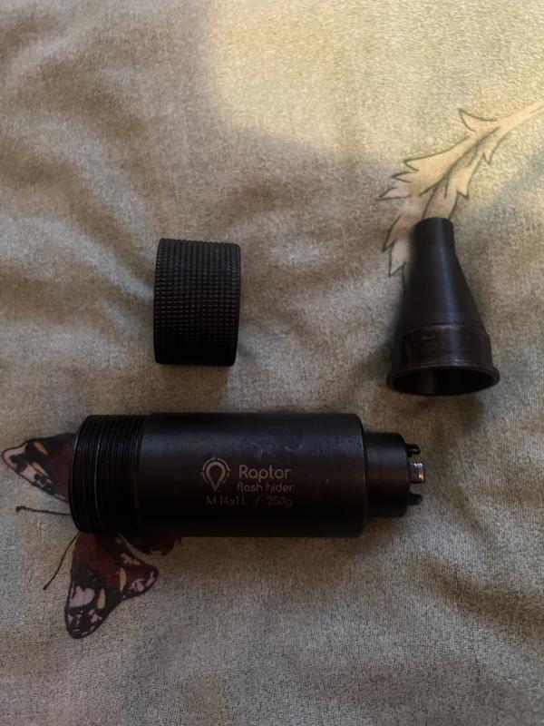 Полностью гасит пламя, несколько смягчает отдачу и уменьшает звук выстрела.