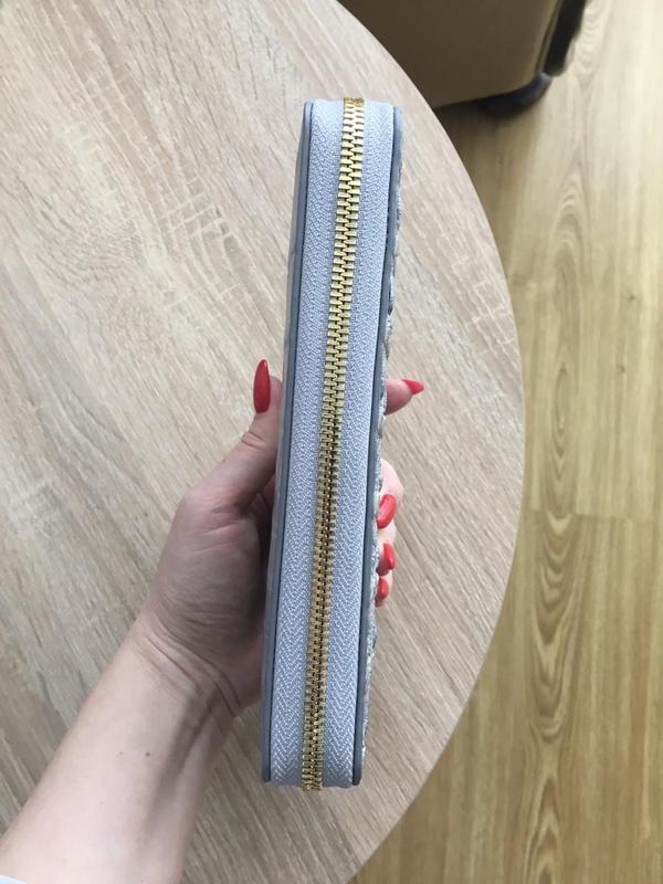 Гаманець портмоне клатч жіночий із натуральної шкіри крокодила сріблястого кольору на золотистій блискавці,розміри 20/10,5/2,5 см