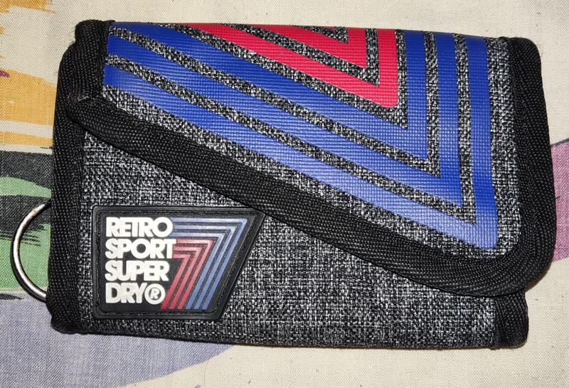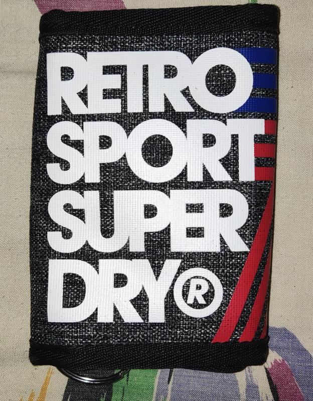 Портмоне спортивного стилю Retro sport super dry, розмір у складеному вигляді 13х9 см, відділення для купюр, дрібниці, пластикові картки, кільце для кріплення, новий стан, висилав після оплати