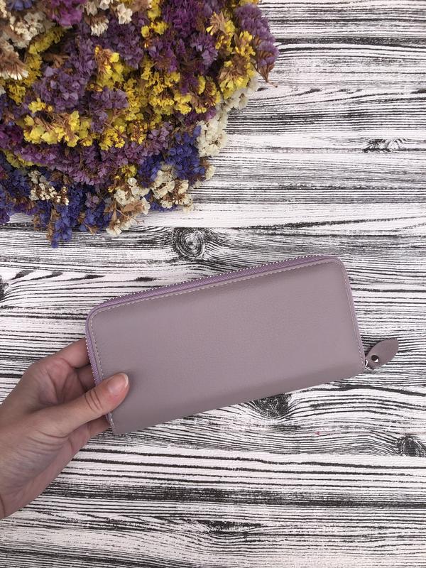 Закривається на блискавку. Усередині є 3 відділення для банкнот, кишеня для дрібниці на блискавці, дві великі відкриті кишені та 8 кишень для візитних карток.