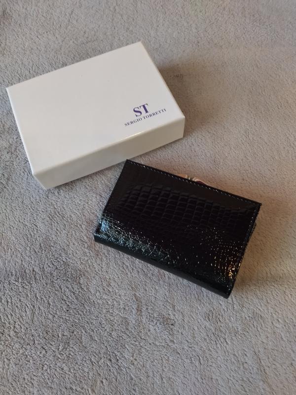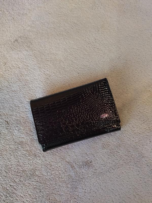 Компактний жіночий гаманець. Зовнішня частина – лакова шкіра, внутрішня частина – натуральна м'яка шкіра. Основне відділення закривається на кнопку і складається втричі. Усередині знаходяться 2 відкритих відділення для банкнот і одне на блискавці, 5 кишень для візитних карток, одна з яких є прозорою. Зовні гаманця на звороті є монетниця на клямці.