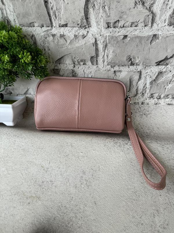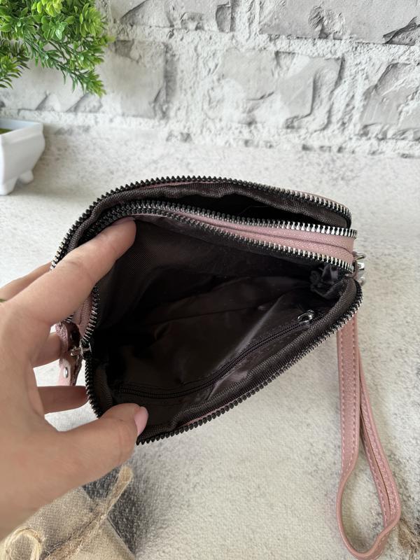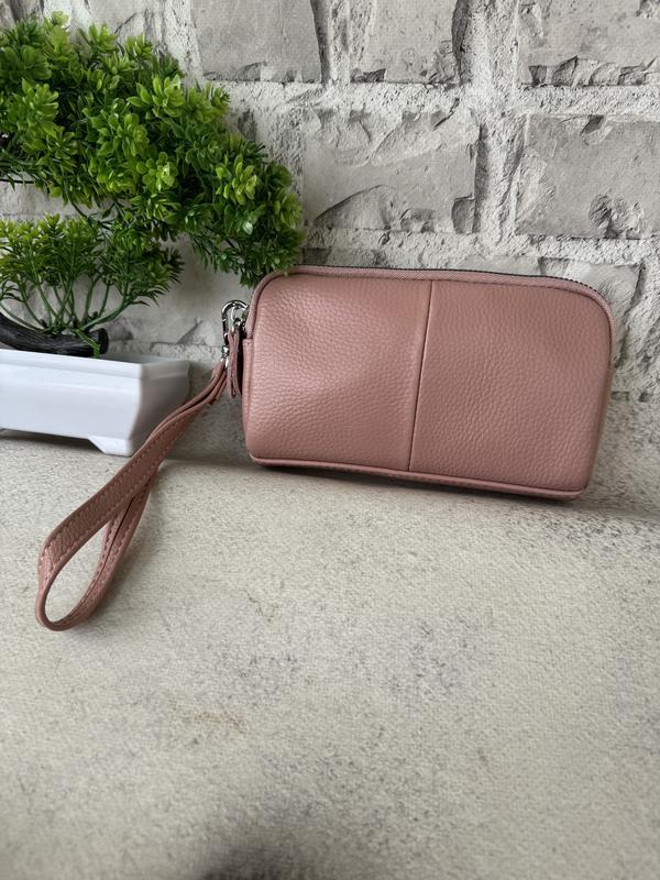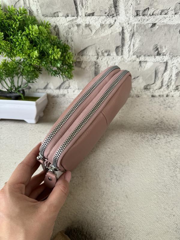 Новий шкіряний великий гаманець. рожеве портмоне на блискавці