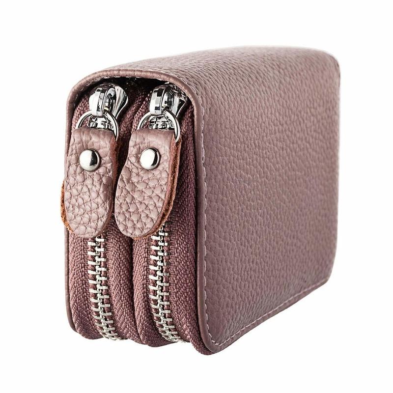 великолепный и женственный качественный кошелек красивого нежного цвета пурпурной розы (между розовым и сиреневым) из натуральной кожи с множеством отделений для карточек или визиток, 4 боковых кармана для бумажных денег в двойном слоеном виде, в которые можно класть и монеты, на ваше усмотрение как вы будете сортировать денежку ;) модель кошелька очень удобна и практична! приятно держать в руках,комфортно удобно использовать! надежная фурнитура!