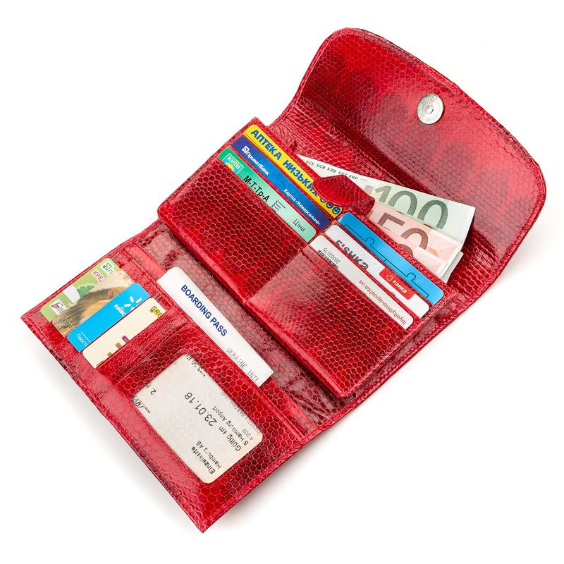 Яскравий жіночий гаманець з натуральної шкіри морської змії, гладкою і