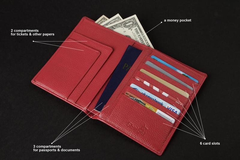 відділення для грошей; - 3 відділення для паспорта; - 6 відділення для