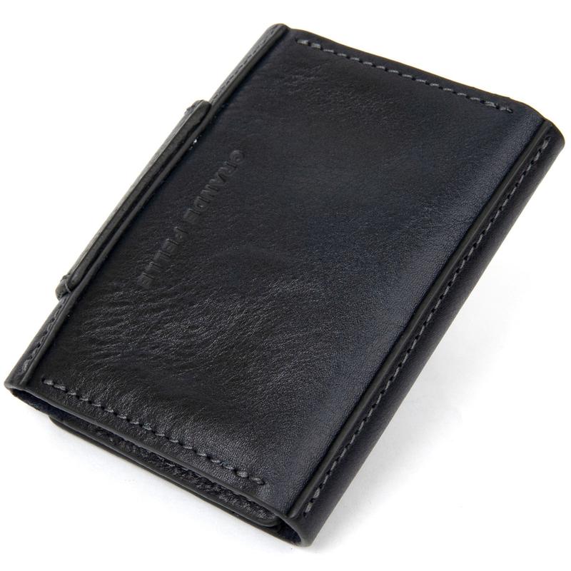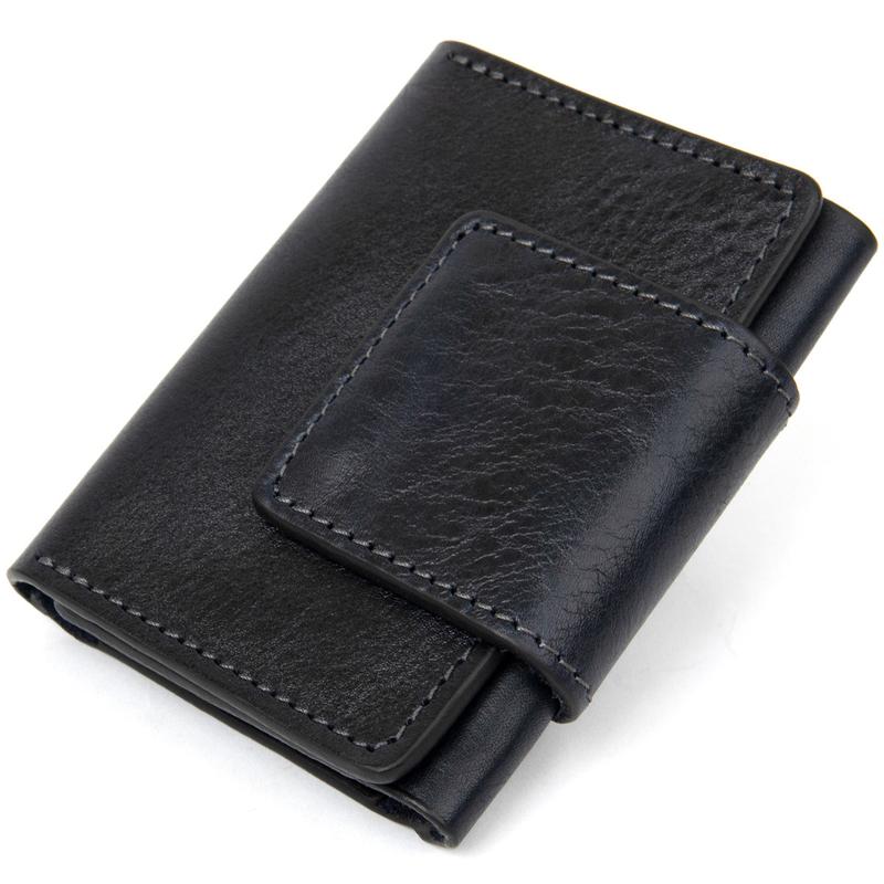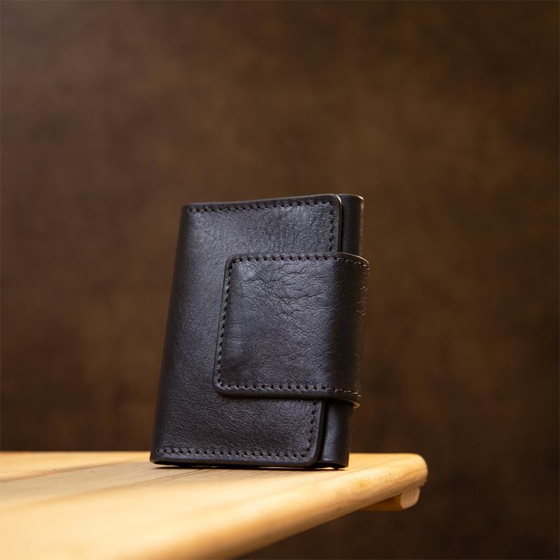 з магнітом; Компактна універсальна візитниця з натуральної шкіри гладкою