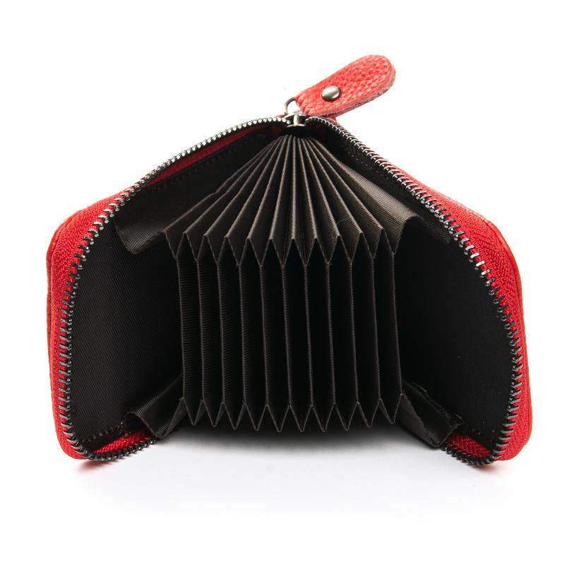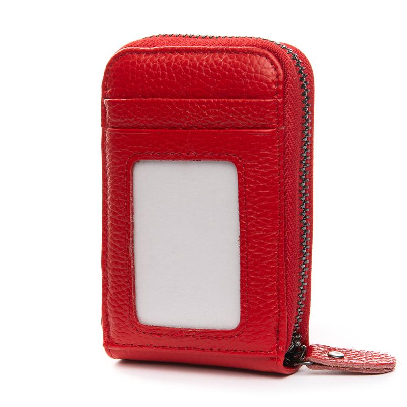 Жіноча візитниця, виготовлена з натуральної шкіри. Закривається на блискавку. Усередині знаходяться 12 відділень для візитних карток. Зовні візитниці є два відкритих кишені, один з яких виконаний прозорим. Розмір (див) 11,5 * 7,5 * 3 арт H862-2