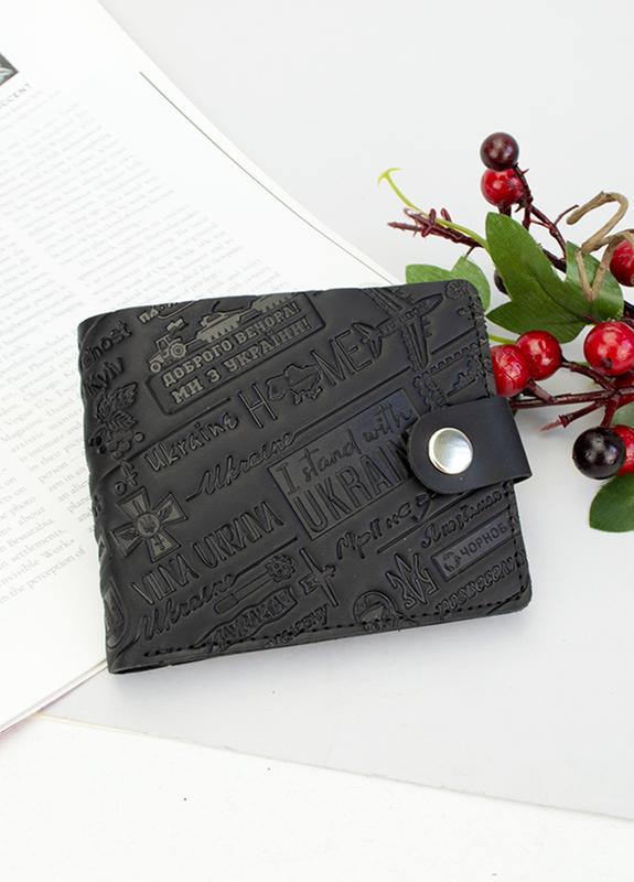 Нова колекція "Ukraine" - це безперечне кохання кожного патріота нашої України. На виробах витіснені фрази та слогани, що стали символами 2022 року: "Доброго вечора, ми з України", "Ой, у лузі червона калина", "Привид Києва", "Російський воєнний корабель, йди...", "Паляниця", "Все буде Україна", "Чорнобаївка", "Байрактар" тощо. Такі аксесуари стануть чудовим придбанням для патріота України та подарунком для друзів за кордоном. Гаманець невеликого розміру виготовлений із натуральної щільної матової шкіри Crazy horse чорного кольору. Аксесуар допоможе підтримувати порядок у купюрах та картках довгі роки. Таке портмоне з легкістю поміститься навіть в маленьку сумку або клатч і не загубиться серед дрібниць. Прослужити таке портмоне своєму власникові не один рік. Усередині 2 відділення для купюр; 3 кишені для пластикових карток, відділення для монет на кнопці. Розмір 11 * 9 * 1,5 див. Виробництво – Україна. Продається в крафтовій подарунковій коробці. Ця модель доступна до замовлення також у червоному, синьому, зеленому, рудому кольорі. Переглянути всі аксесуари колекції "Ukraine".
