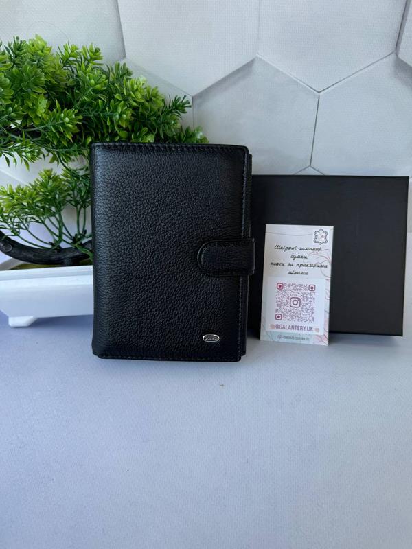 Вертикальне портмоне з натуральної шкіри з 2 відділеннями під банкноти (1 змійка), усередині - відкидний блок з правником, що застібається клапаном, відділення для дрібниці, 5 великих кишень, 8 кишень під карти. Розмір (см) 10,5*14*2
