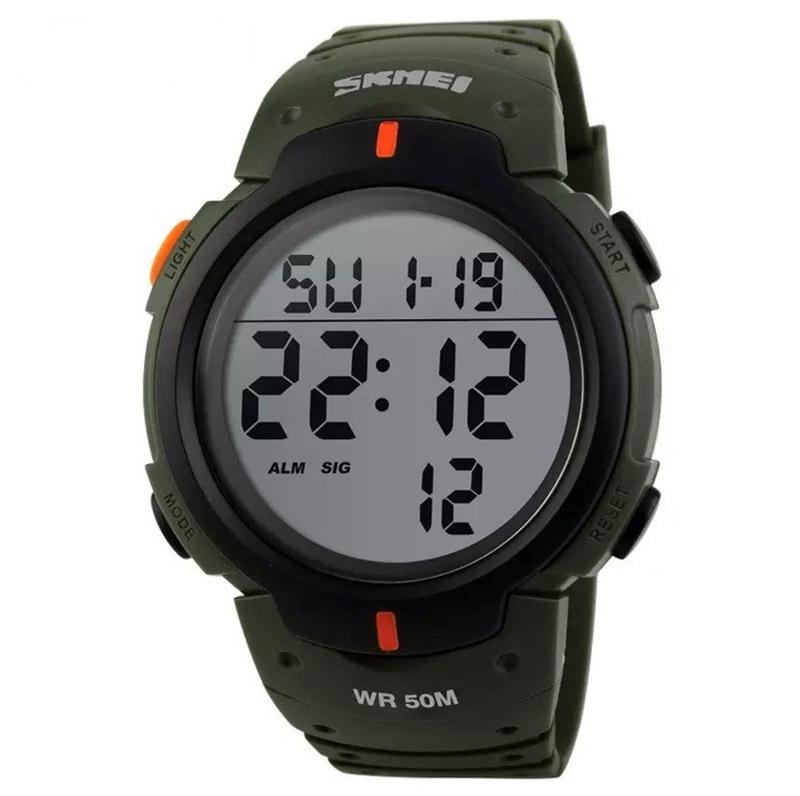 Модель наручного годинника SKMEI 1068 має динамічний обтічний корпус з удароміцного полімеру, що забезпечує надійний захист механізму, а великий контрастний РК-дисплей захищений міцним склом із композитних матеріалів. Ремінець, виготовлений з гіпоалергенного матеріалу, забезпечує комфортне носіння та надійну фіксацію годинників на зап'ястя. За рахунок широкого діапазону регулювань браслета, годинник SKMEI 1068 підійде будь-якому чоловікові. Надійність кріплення Класичний замок-пряжка з металевою застібкою Tang Buckle із нержавіючої сталі надійно утримує браслет на зап'ясті та оберігає від випадкового розстібування. Водонепроникність Матеріали, з яких виконаний годинник, є відмінним захистом від вологи. Ви можете спокійно приймати холодний душ, мити руки або спокійно плавати, не замислюючись про збереження годинника. При цьому годинник буде справно працювати! Клас водозахисту 5 АТМ. Підсвічування Яскраве електролюмінесцентне підсвічування допоможе власнику дізнатися точний час навіть у повній темряві. Просто натисніть кнопку і приємний зелений колір висвітлить елементи циферблата на кілька секунд. Також годинник має полегшену вагу, що дуже зручно для спортсменів. Надягаючи годинник, Ви забуваєте про них і згадуєте лише тоді, коли треба подивитися час. Основні характеристики: Висока якість китайського виробництва Відображає час у вигляді цифрових номерів Відображення часу - вказують години, хвилини та секунди Відображення дня та дати 12 h/24 h Функція будильника - увімкнена Секундомір функція - увімкнена Чотири кнопки для керування різними функціями Функції підсвічування Вага: 60 г Матеріал ремінця: Еластичний пластик Стать: чоловічі Циферблат діаметром: 4.7 см Довжина ремінця: 24 см