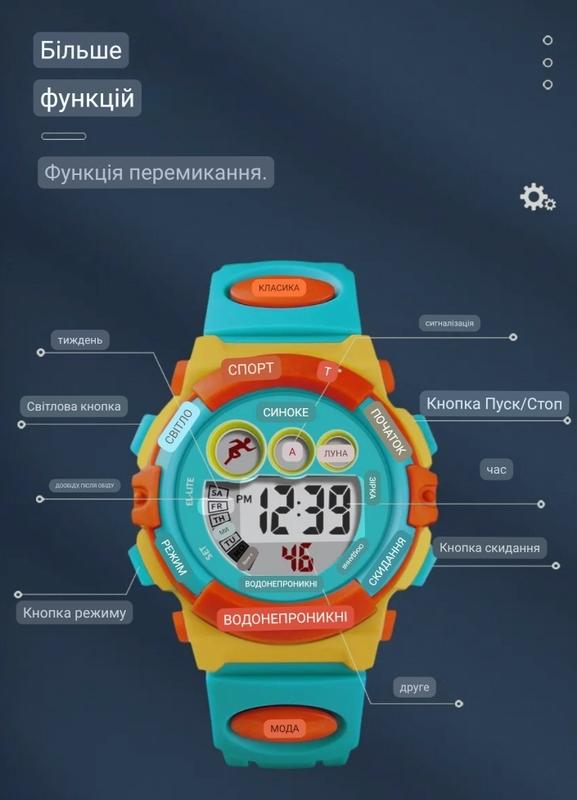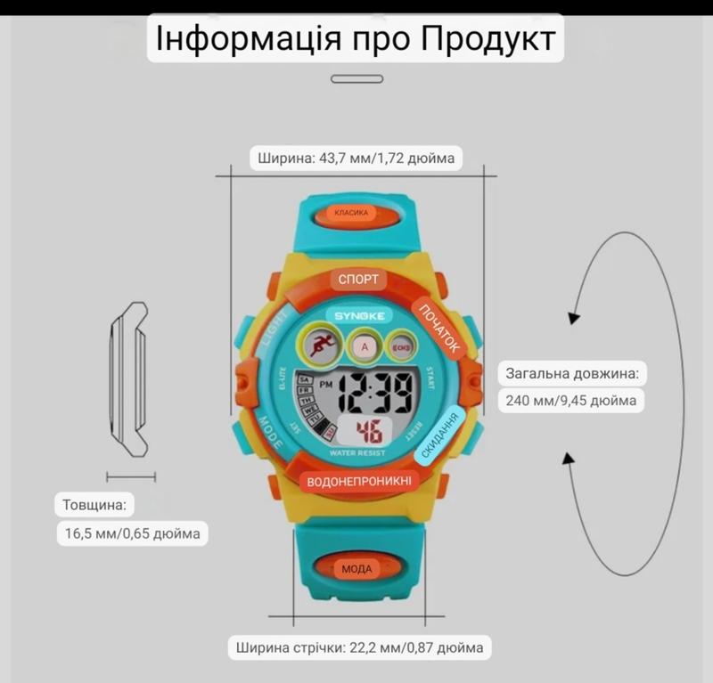 Стильний та функціональний годинник з інформативним дисплеєм та яскравим підсвічуванням, можливість відображення дати, вбудований секундомір.