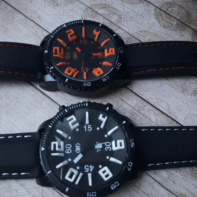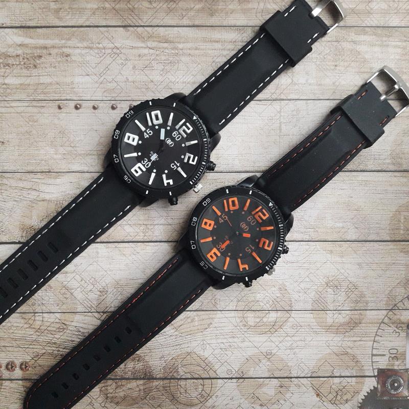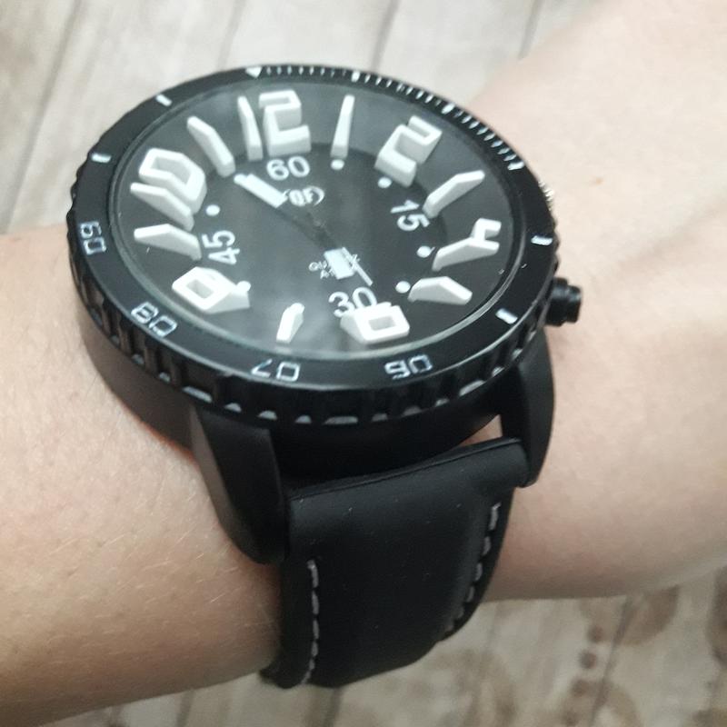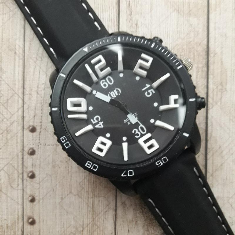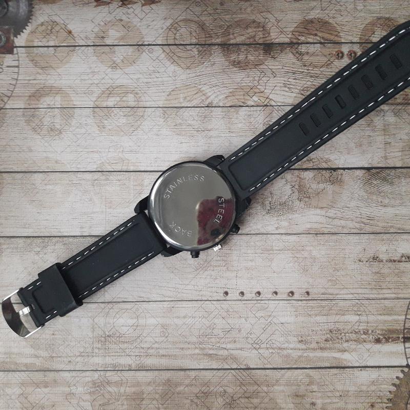 Великий вибір годин, дивіться в моїх оголошеннях Колір корпусу: чорний Механізм: кварцевий Скло: мінеральне Індикація: аналоговий циферблат Матеріал корпусу: метал Матеріал ремінця: силікон Колір ремінця: чорний, прошитий білою ниткою Діаметр корпусу: 49 мм Товщина корпусу: 12 мм Ширина ремінця: 22 мм Довжина ремінця без пряжки: 25 см,(до крайнього отвори 23 см) Батарейка: Ag4(в комплекті).