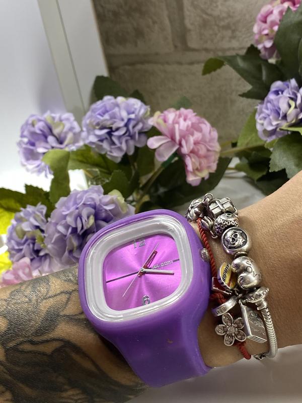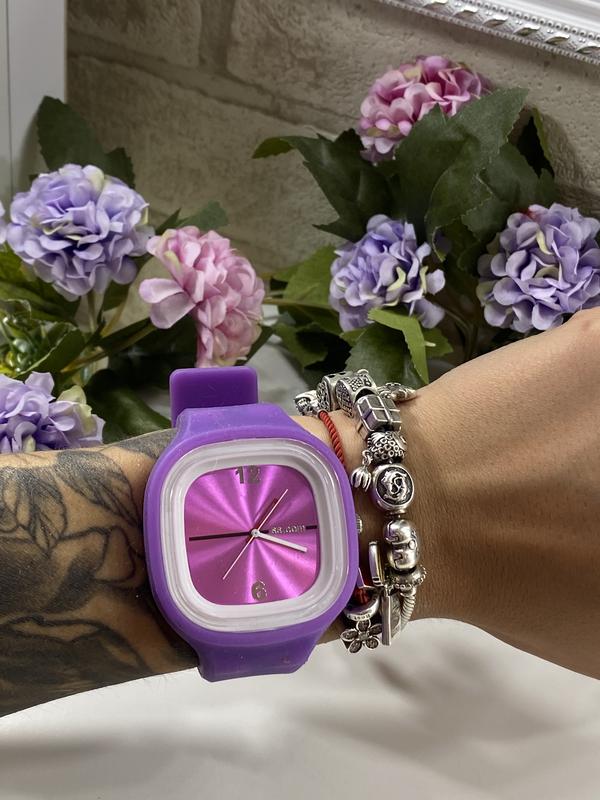 Стильні і яскраві годинник... Відмінної якості..силіконові. Розмір ремінця можна регулюється.. Виглядає дуже стильно, яскраво і нарядно.. Кварцові на батарейці..
