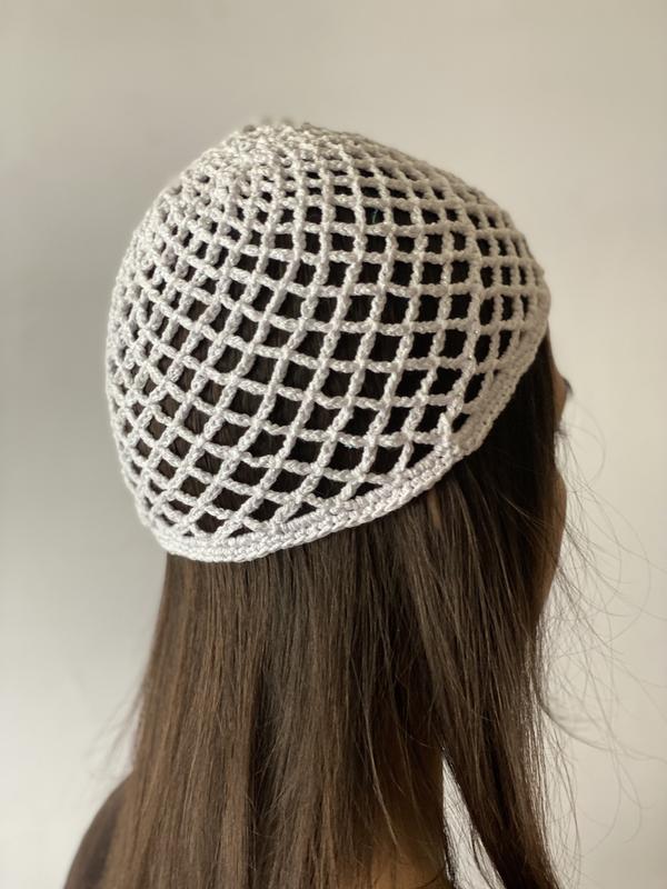 Шапочка кроше сітка, чепчик жіночий літній, бандана із бавовни ручної роботи (в наявност...