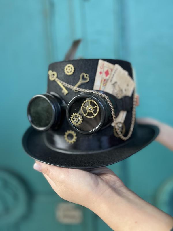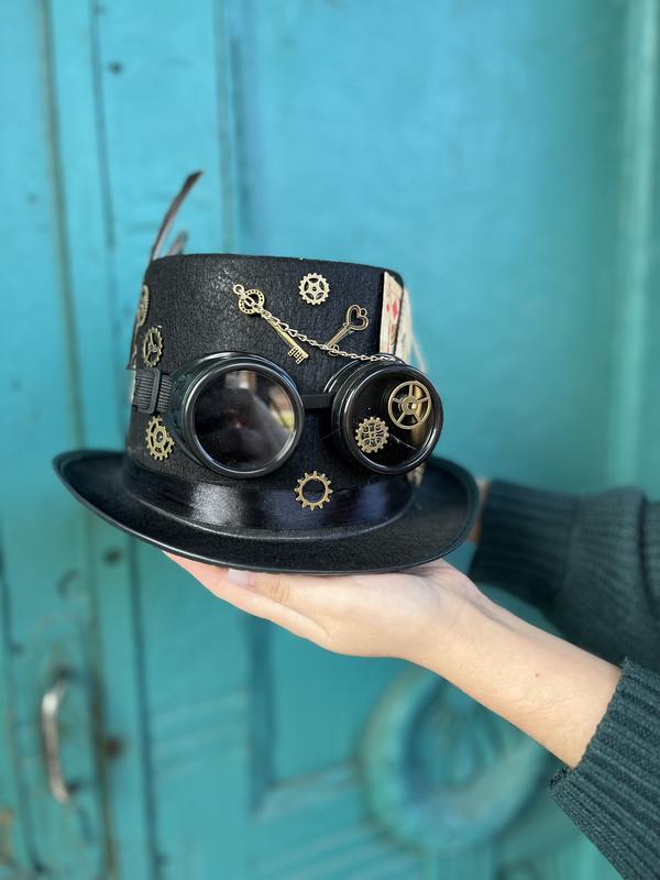 Шляпа стимпанк, с очками , с гоглами , шляпа цилиндр, для вечеринки и фотосессии