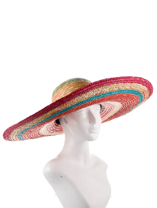 Червоно-різнобарвний солом'яний капелюх Missoni Mare від сонця зі смугастим візерунком по всій довжині. Дизайнерський розмір L/M
