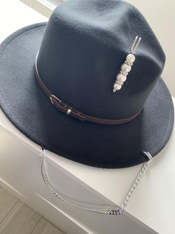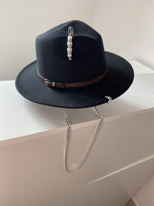 Чорний фетровий капелюх з металевим декором 📍ланцюжок знімається 📍розмір регулюється