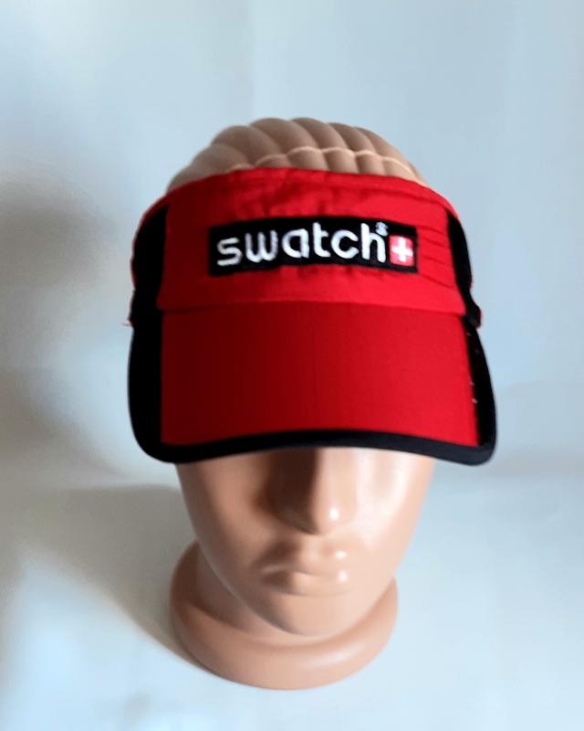 Дашок Swatch сонцезахисний червоно-чорний на махровій підкладці, застібається на липучку one sizeЗАМІРИкозирок довжина/ширина 7,5/22 см, туля висота перед/зад 5,5/4,5 см