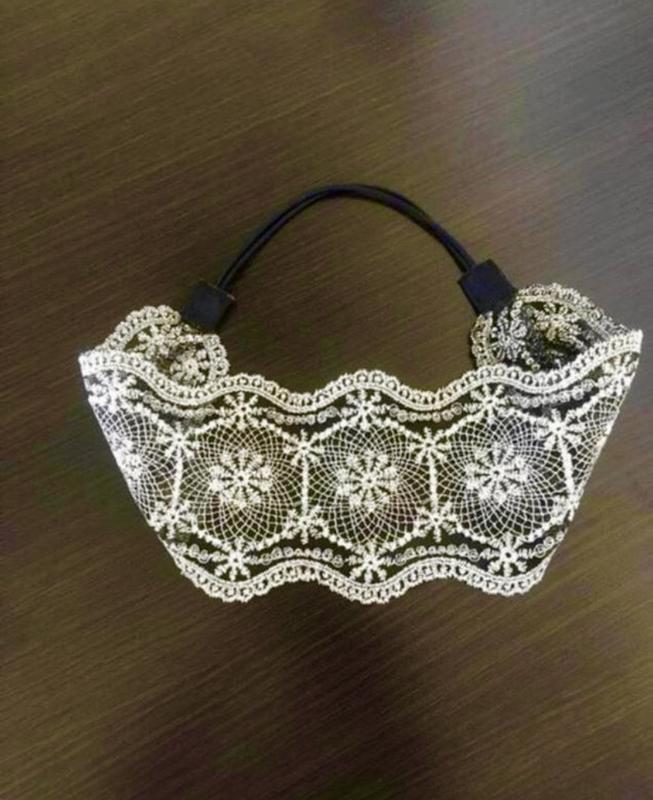 Ефектна мереживна пов'язка-ободок. Ширина 10 см. Сталі подвійна гумка, потягнеться на будь-яке коло голови