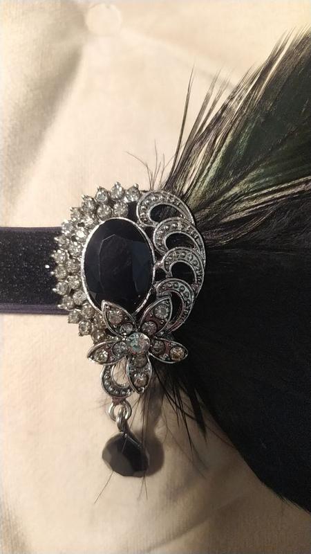 Красива пов'язка з пір'ям в стилі Гетсбі, вінтаж, Америка 1920-х років, для тематичних вечірок, фотосесій та корпоративів. Розмір універсальний.