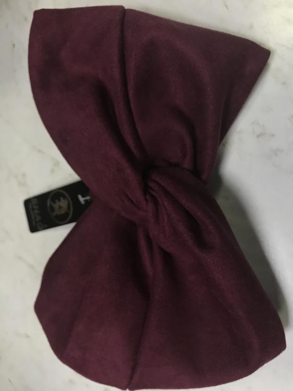 Колір тільки бордовий Подвійна ,широка пов'язка-чалма на голову з еко замшідобре зберігають тепло , легко приймає форму голови , підійдуть не тількидівчатам , але й жінкам . Ширина 13-15 див. Аксесуар виглядають дуже ефектно,зроблений якісно.