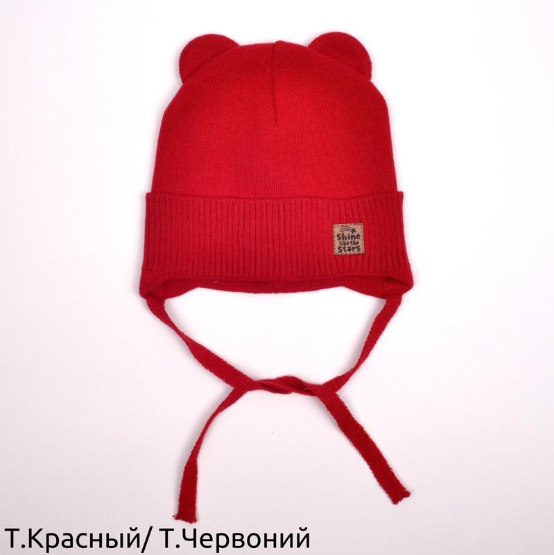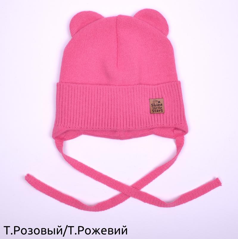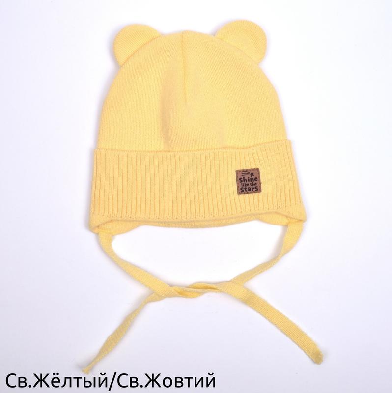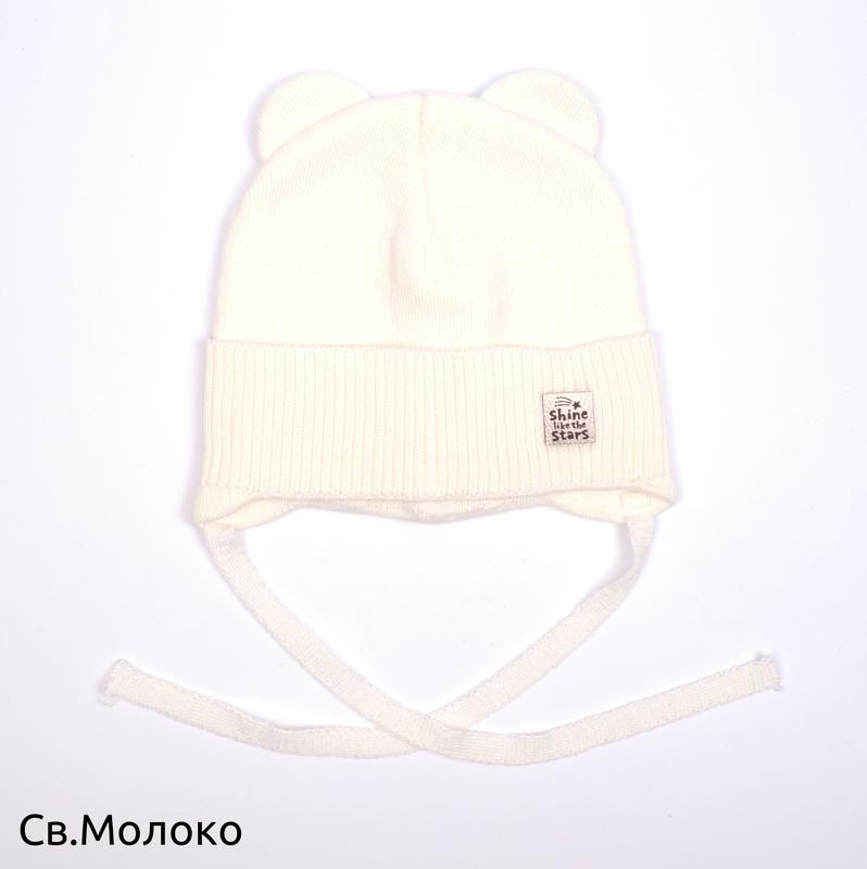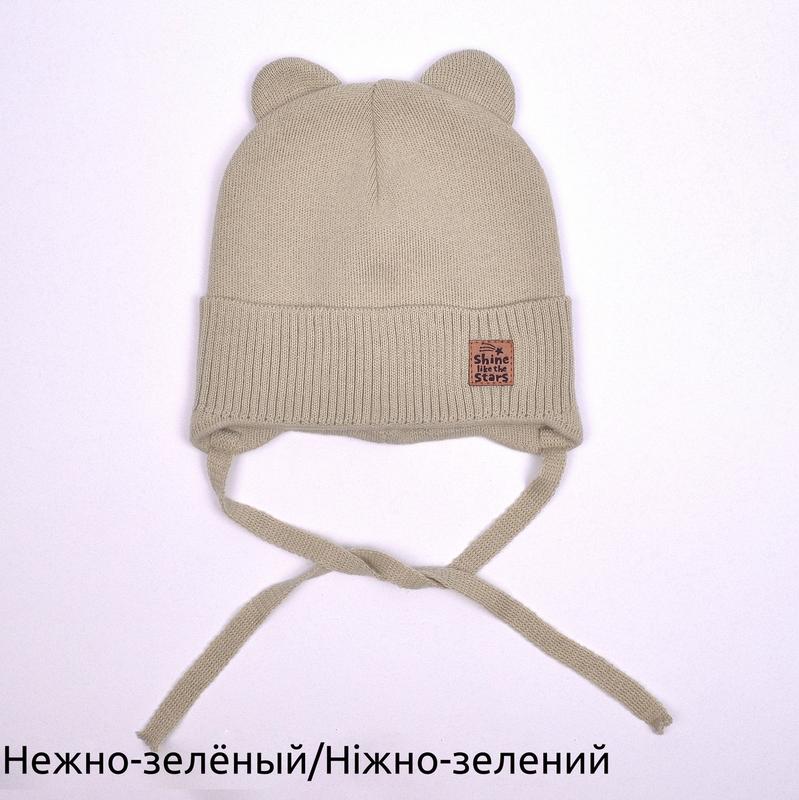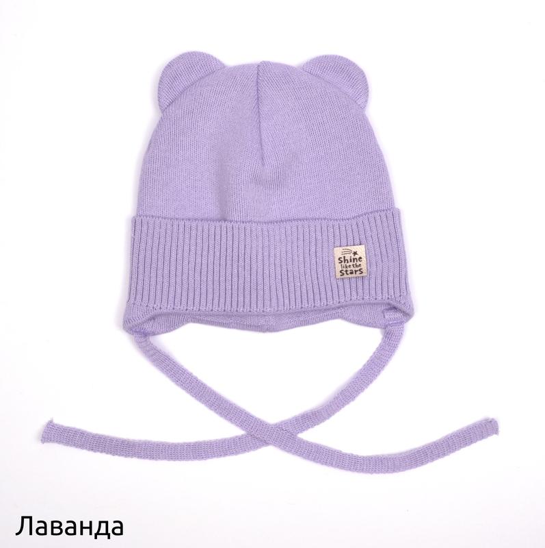 Стильна шапочка з вушками, на зав'язках. Тонка в'язання в 1 шар, з невеликим коміром. Підходить малюкам орієнтовно від 6міс. до 3 років.