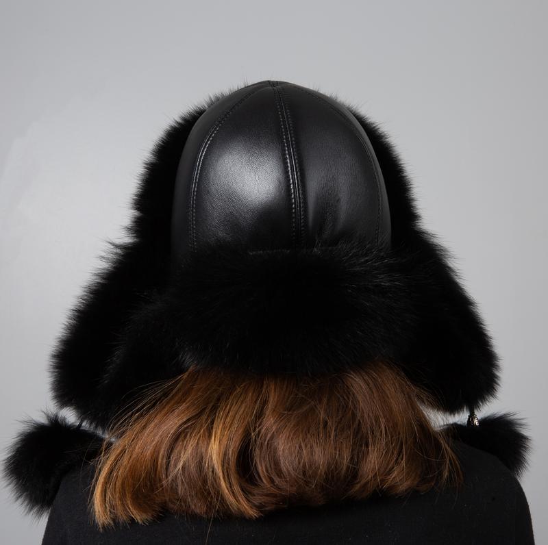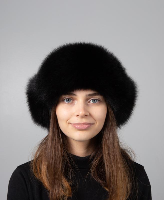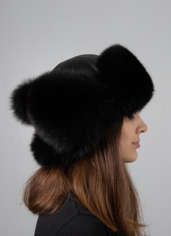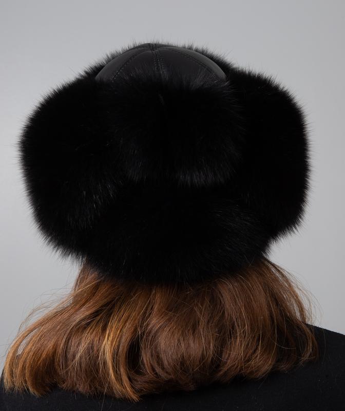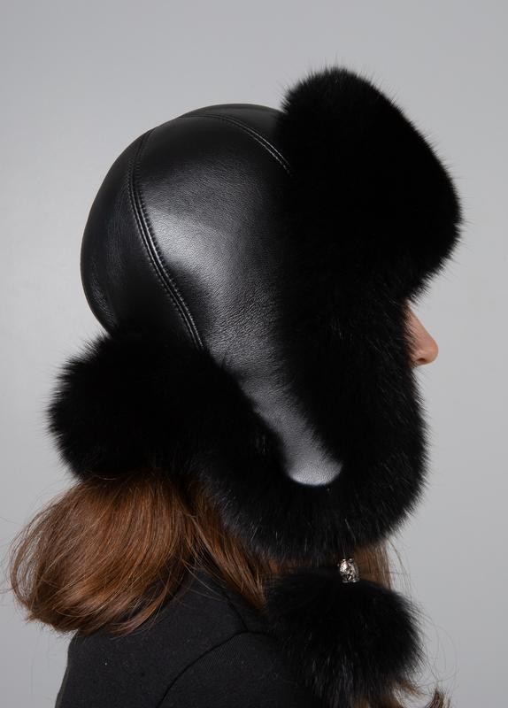 Женская меховая шапка ушанка из натурального меха песца и натуральной кожи, цвет: Черный, размер от 54 до 60 см обхвата головы, подкладка: Паянка.