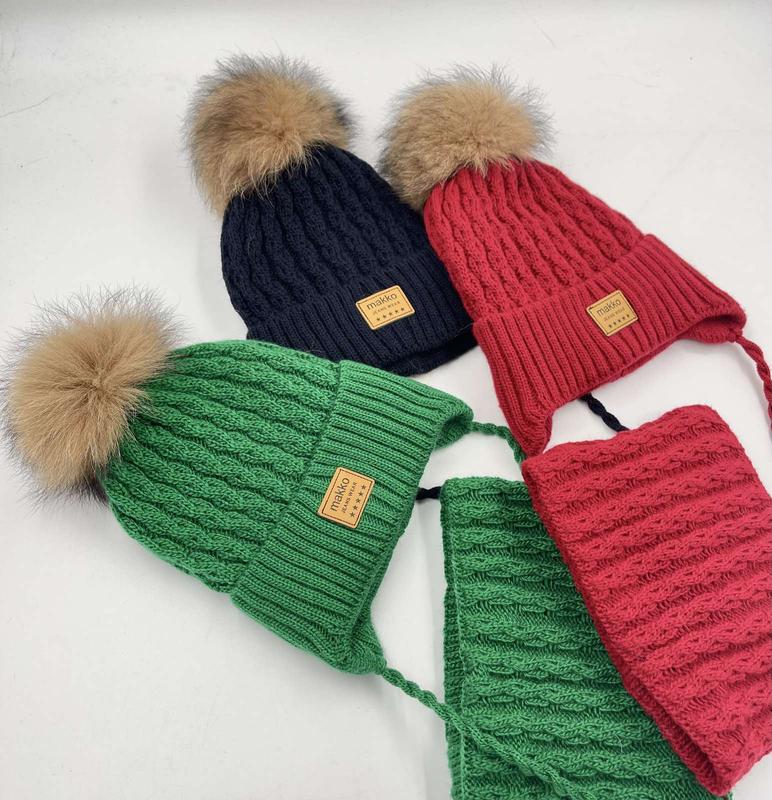 Набір (шапка в’язана на флісовій підкладці та хомут)👍
