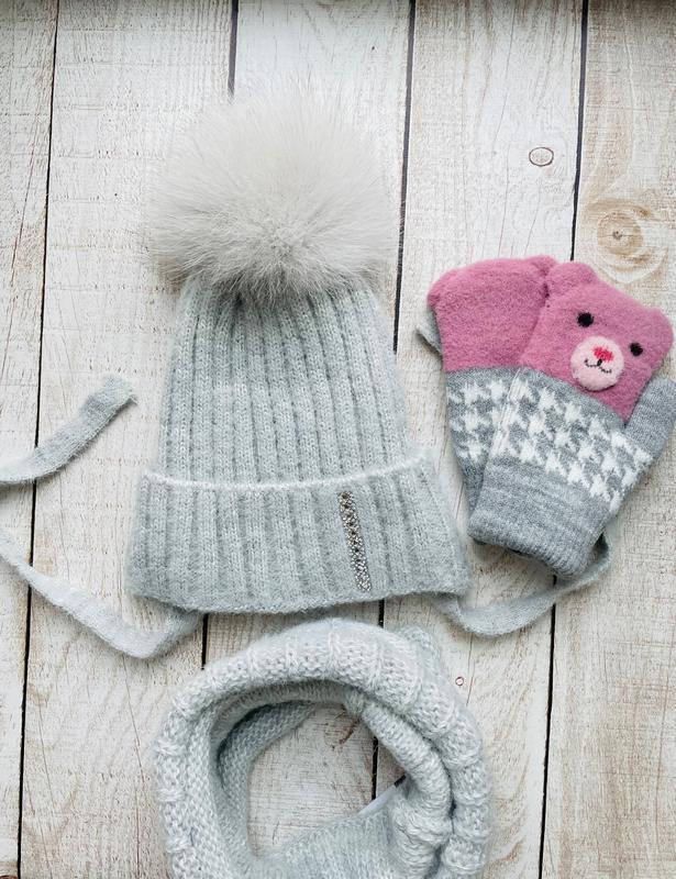 Зимова шапка для дівчинки. Всередині повністю на флісовій підкладці. Доре тягнеться і зручно сидить на голові.