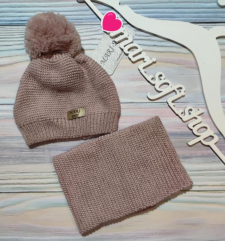 Зимовий комплект кольору пудра - шапка та снуд для дівчинки від Mari-Knit у розмірі 47-49 (о2).