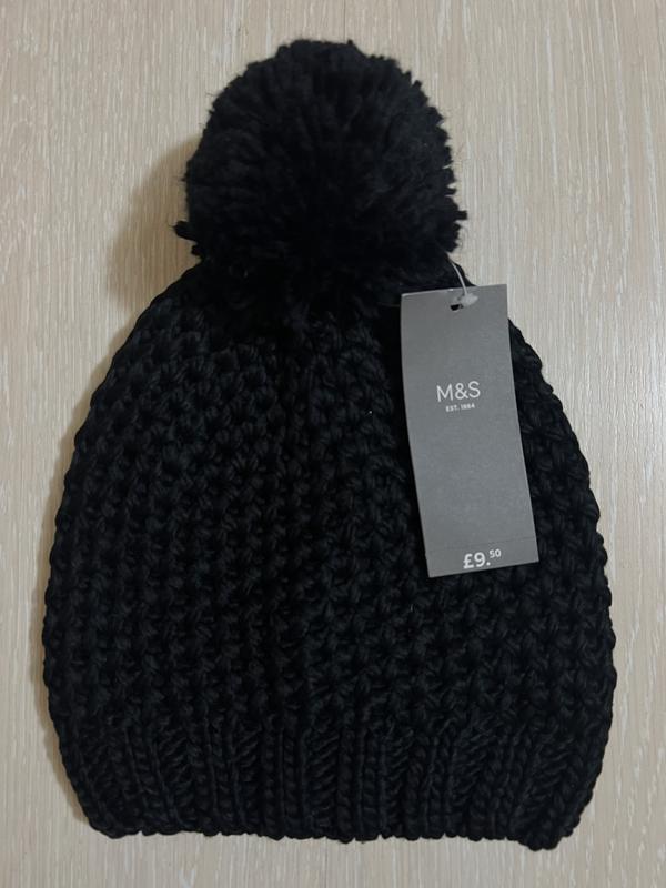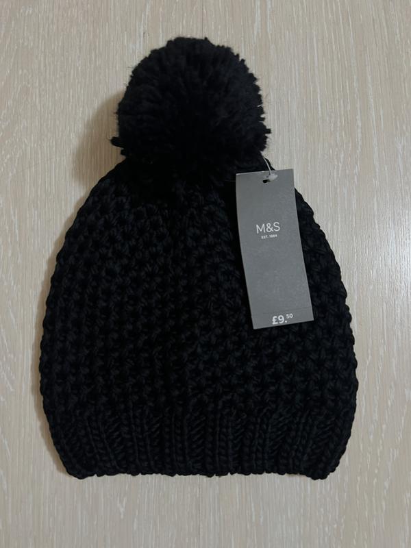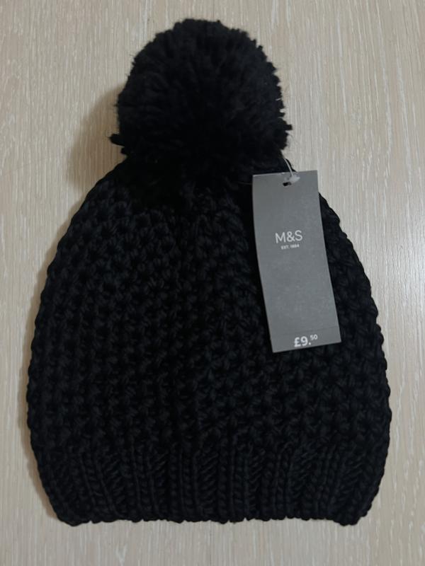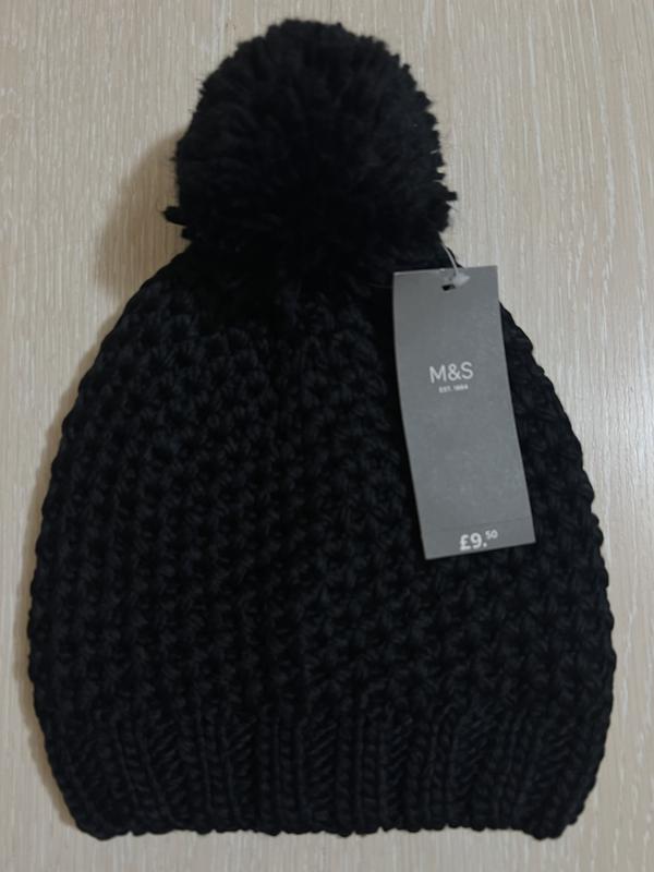 Пропоную до вашої уваги дуже красиву та стильну брендову в'язану шапочку чорного кольору (у живу має набагато цікавіший вигляд). Фірма M&S. Склад: 100% акрил... Нитка м'яка та приємна до тіла. Довжина без бубону — 22 см, з бубоном — 27 см, ширина — 20 см + дуже добре тягнеться. Внимание!!! Під час купівлі три й більше своїх будь-яких речей — зісплатною доставкою посилки Новою поштою. Вдалих покупок.