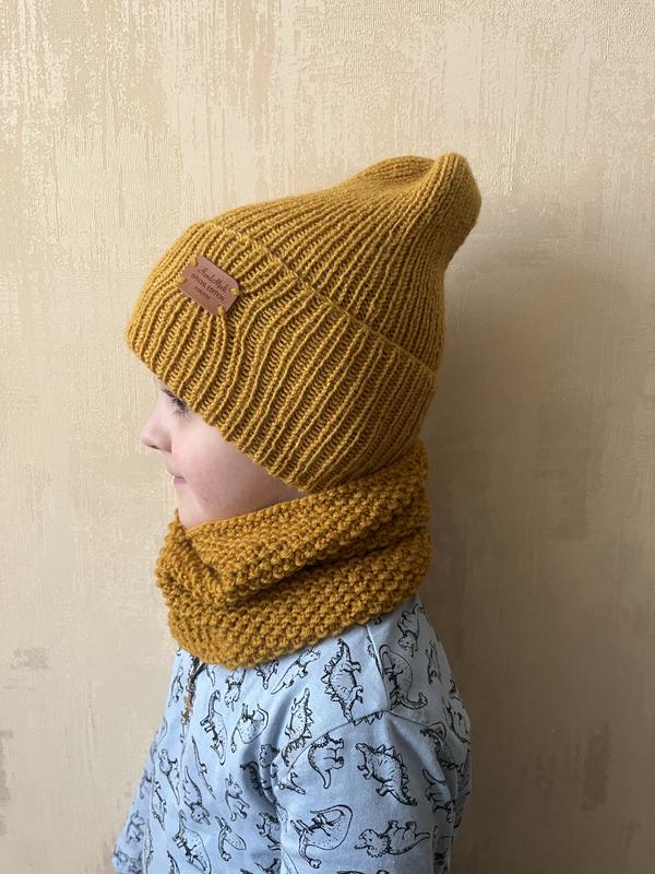 Зимовий комплект шапка та хомут. тепла шапка з вушками та хомут. в'язаний комплект на зиму. в'язана шапка з вушками та хомут