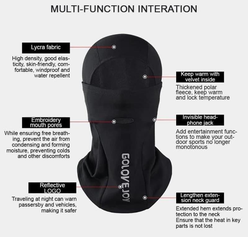 Можна застосувати як підшоломник, шарф, закрити все обличчя або тільки