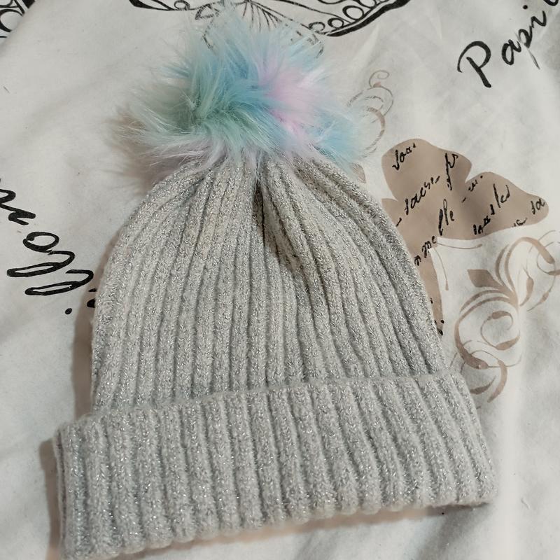 Шапка з хутряним помпоном . шапка з люрексом