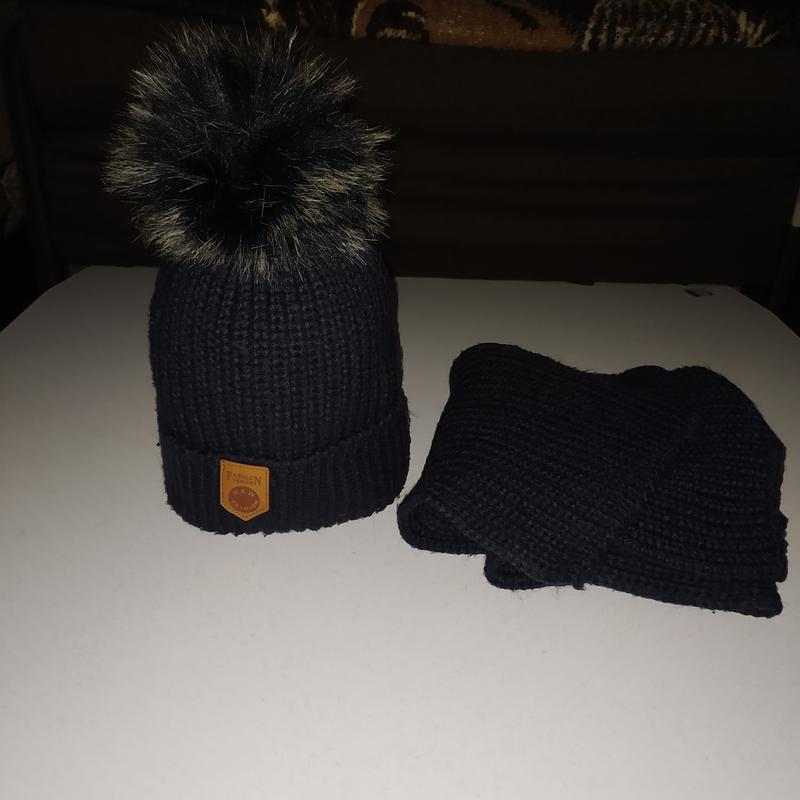 Комплект зимовий шапка з пумпоном та шарф New fashion