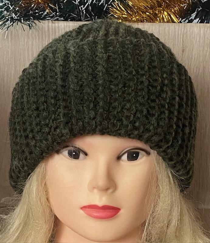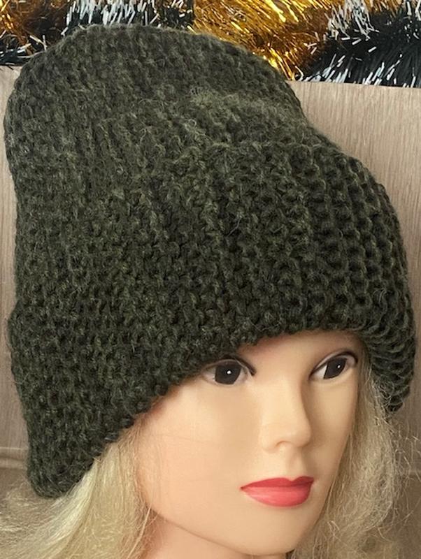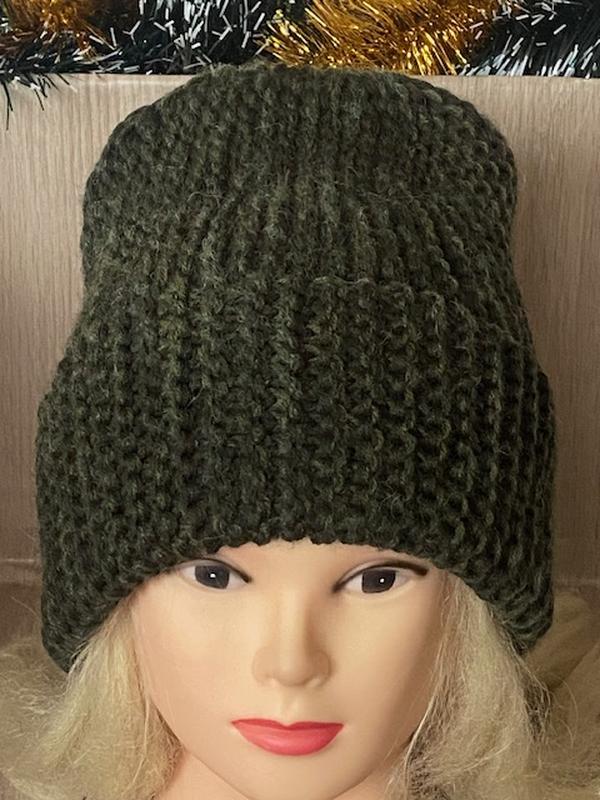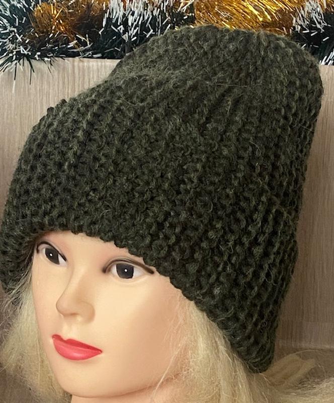 Ручна робота, склад 40% вовна, 60% акрил. Шапка висота 30-35 см, висота відворота регулюється. Окружність голови 50-60 см. призамовленні вкажіть розмір. Без підкладки.