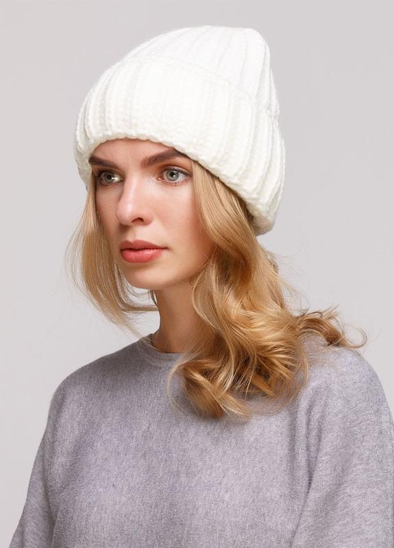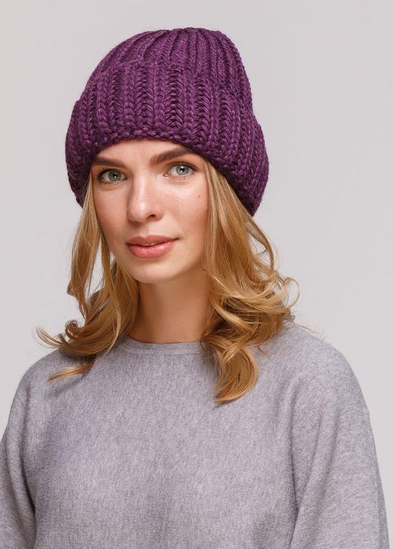 Тепла модна шапка крупної вʼязки з відворотом. Гарна сідає по голові, не злазить.
