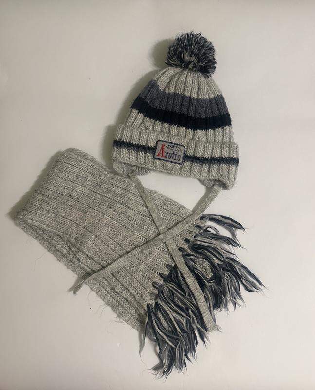 Набір зимової шапки та шарф для хлопчикаПрекрасний станНабір дуже теплий і гарнийУсередині шапки м'який флісНа 3-4 роки ( може й на 5) а шарф так і на все життя можна)))