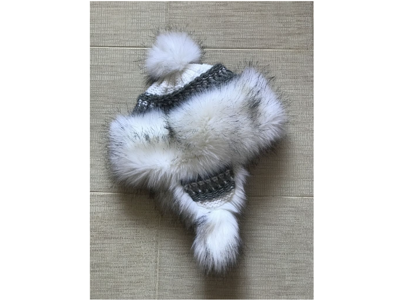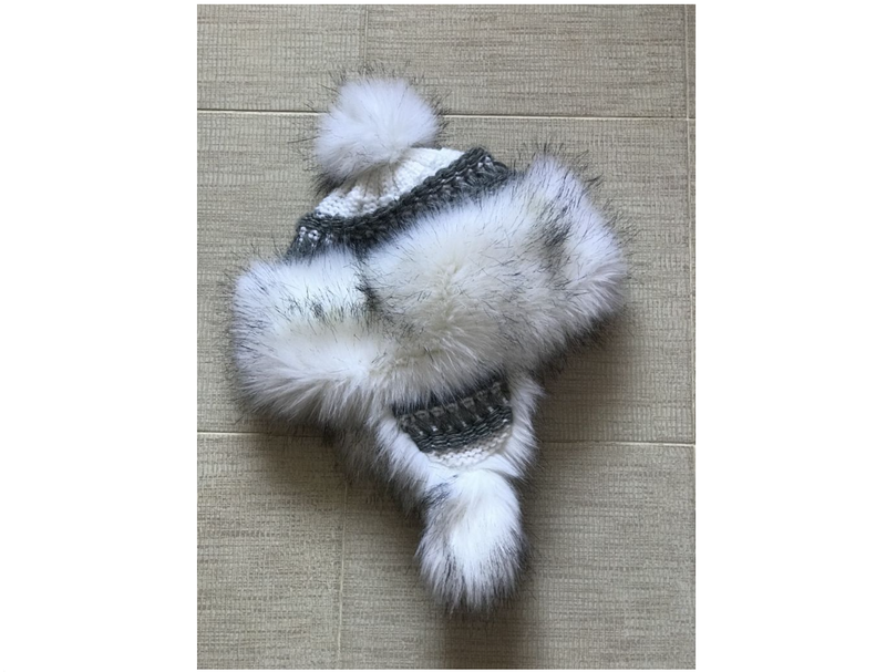 Тепла зимова шапка з вовною на флісі, з вушками та помпоном, Starlight.
