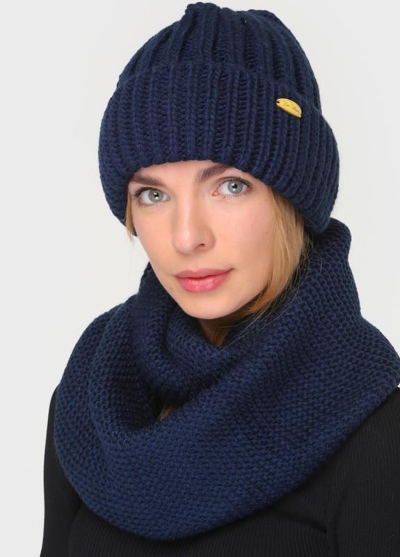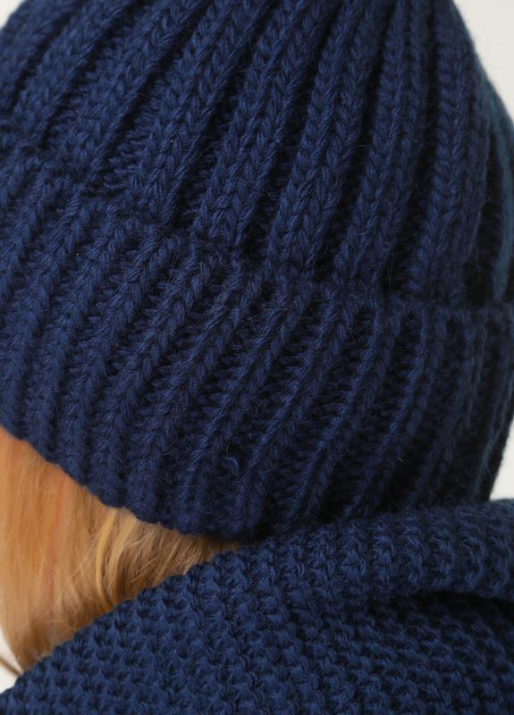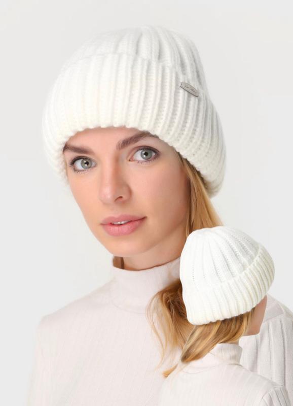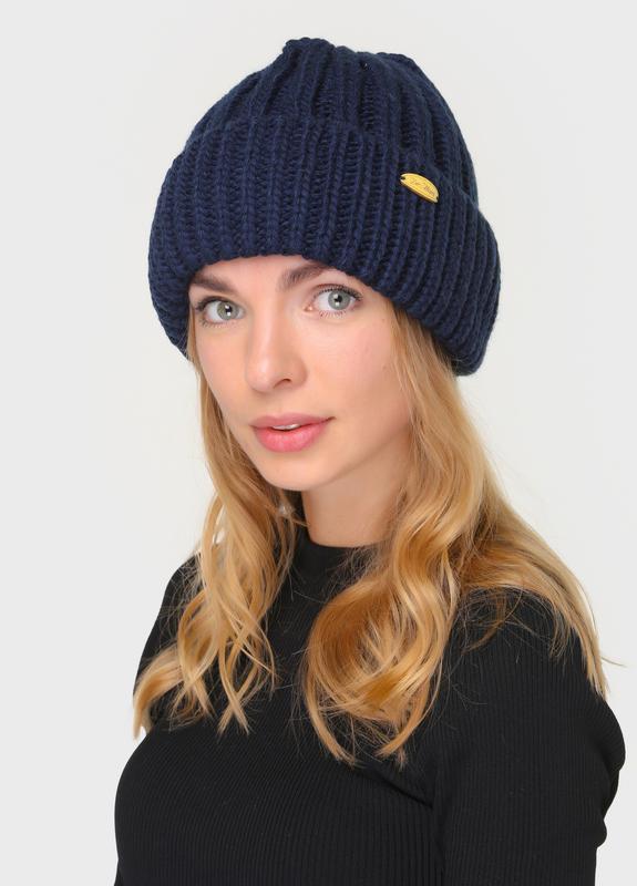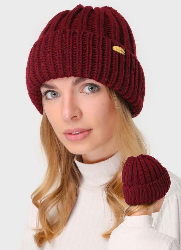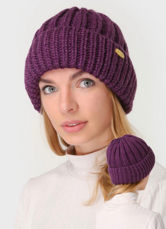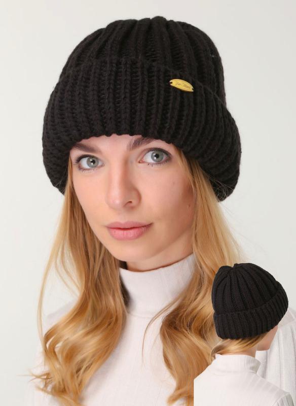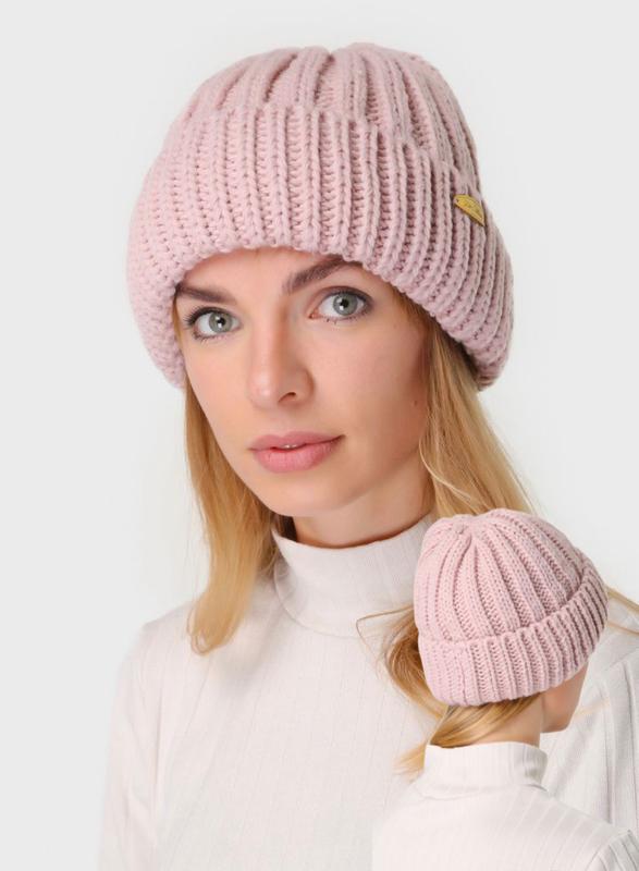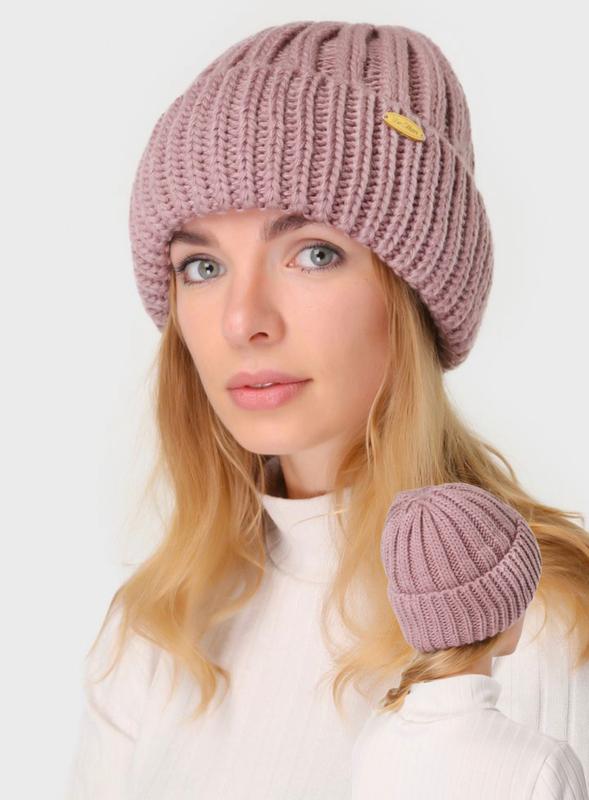 Тепла модна шапка крупної вʼязки з відворотом на флісі. Гарна сідає по голові, не злазить.
