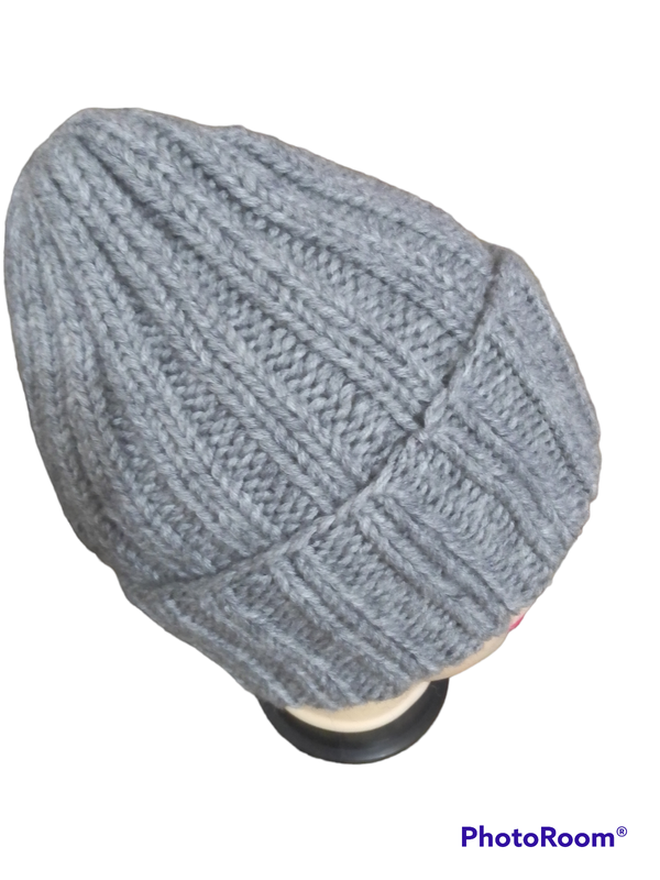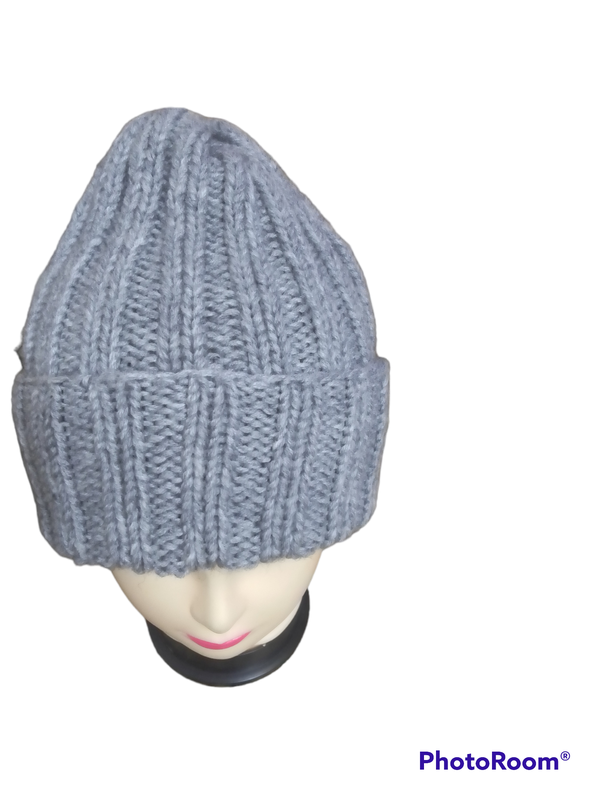 В'язана об'ємна шапка з відворотом.