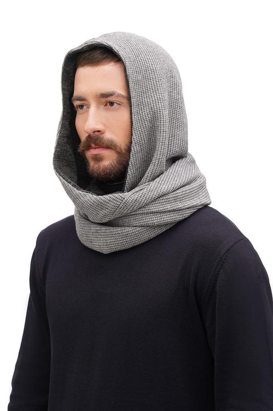 Теплий головний убір, який повноцінно замінить і шапку і шарф. Ззовні вязане полотно акріл/вовна, всередені мякенький трикотаж акріл/бавовна. У нас ви можете замовити: сірий, бежево-сірий, чорний, світло-бежевий, блідо- рожевий Висота каптура -36см; глибина -32см Напівокружність шарфа-хомута-72см, висота-19см Застібка на металевих кнопках, бавовняний шнурок в колір. Теплий і комфортний каптур пасуватиме до будь якого верзнього одягу- чи то пальто, чи то пуховик.