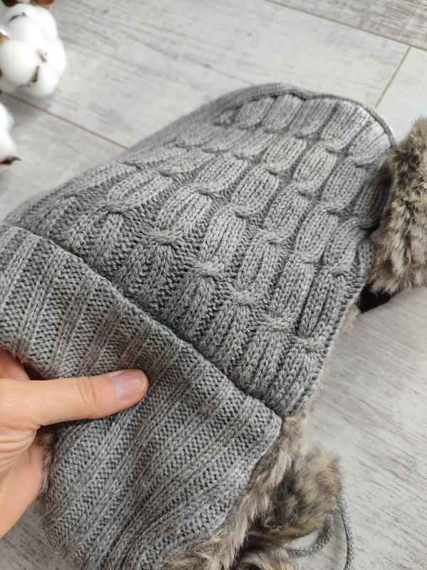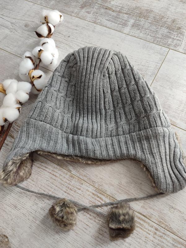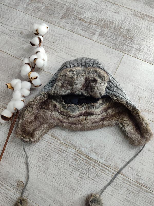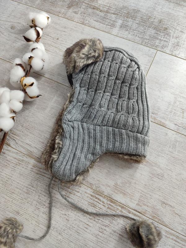 Чоловіча шапка вушанка сірого кольору з еко-хутром від Atmosphere Зад шапки подовжений-не задуває в потилицю.Утеплена стьобаною підкладкою.Без дефектів.