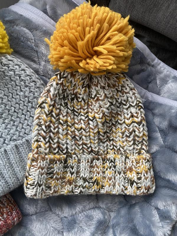 Дуже класні вʼязані шапки в розмірі one size підійдуть на вік від 10років Дуже мякенькі та гарно тягнуться .