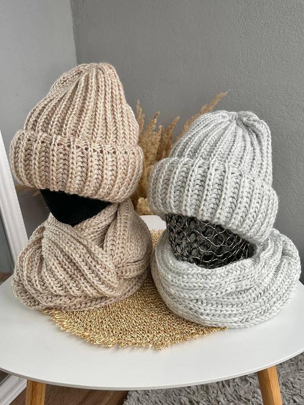 ✌️Комплект Джинжер ✌️✨Шапка+хомут✨🧶Крупна вьязка🧶Виробник: УкраїнаРозмір: 56-59Вьязка: одинарна з 2 відворотом🍁❄️Склад: вовна 50%, акрил 50%Шапка:💸399 грн