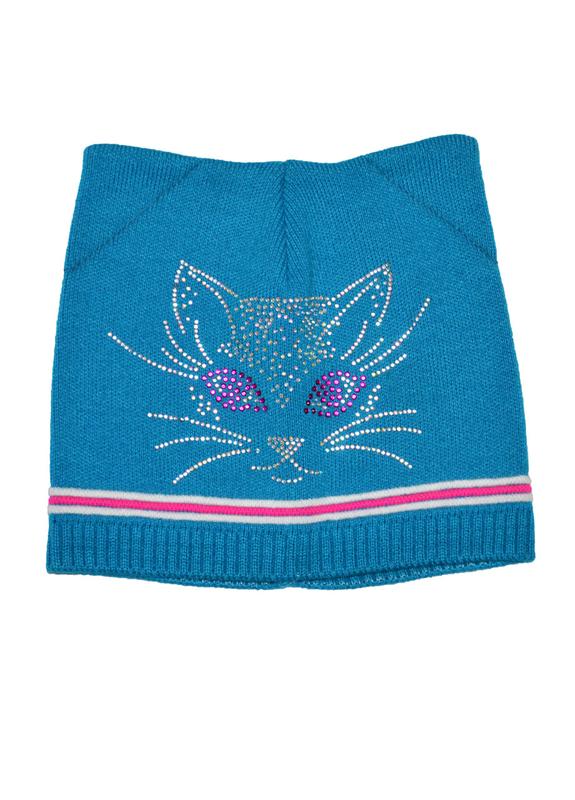 Шапка дівчаткам 1-3 роки демісезонна "кішечка" темно-бірбзова 48/50