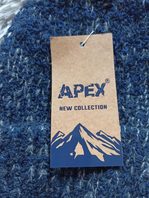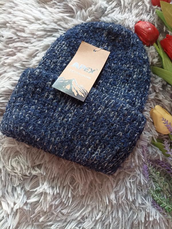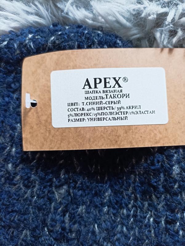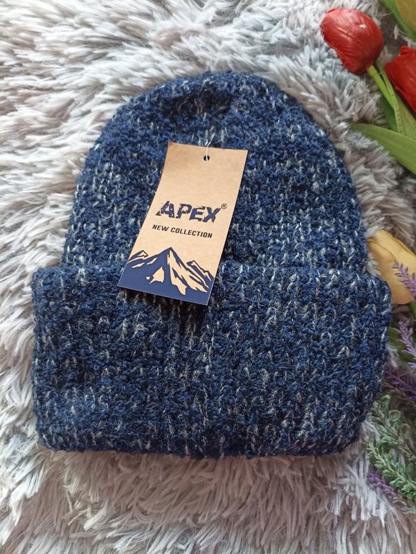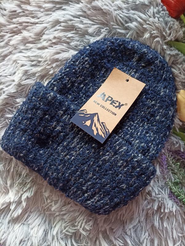 Тепла в'язана шапка такорі Apex.Розмір універсальнийширина 19см, вільно тягнеться до 30смвисота 22.5смСклад: 40% шерсть, 39% акрил, 5% люрекс, 15% поліестер, 1% еластан.