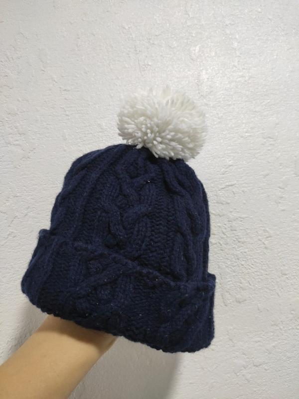 Чоловіча шапка синя чорна зимова осіння з балабоном тепла в'язана на хлопця підліткова