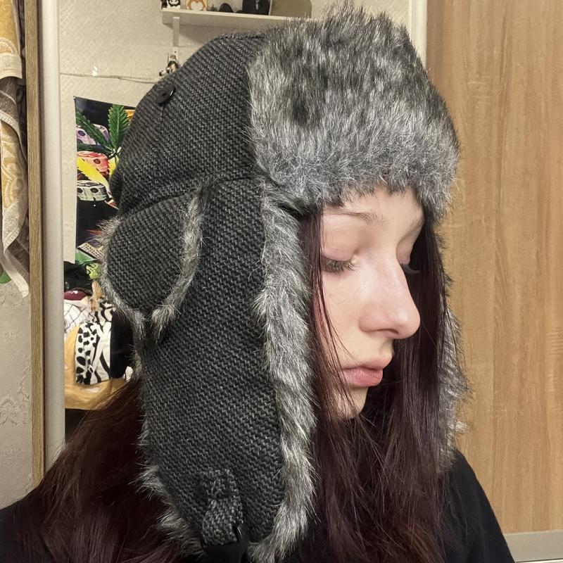 Вʼязаний теплий пухнастий вовняний чепчик ручної роботи в стилі gunia